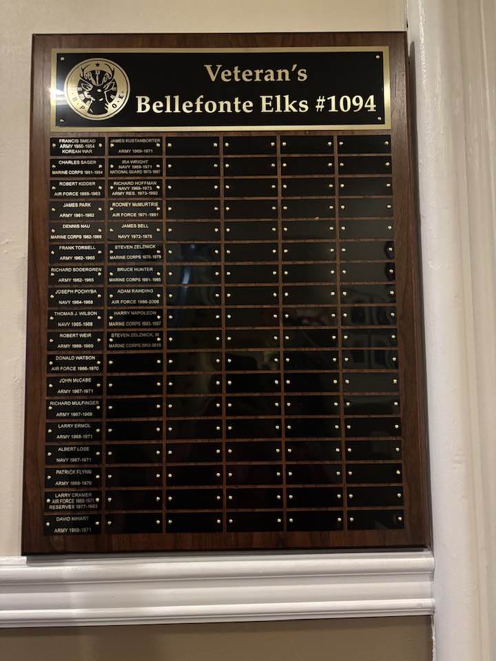 The Elks pledge “So long as there are veterans, the Benevolent and Protective Order of Elks will never forget them.” To identify our members who are Veterans, this plaque was made to list those members. The plaque was made by George “Whitey” Noll and it turned out beautiful! The plaque can display 102 name plates, each engraved with the member’s name, branch of service and years served. The plaque is hanging in the atrium, next to the branches of service flags and across from the Veterans table. If you are a veteran, and would like to have your name on the plaque, please contact Terree Holsing at tmichel0902@gmail.com